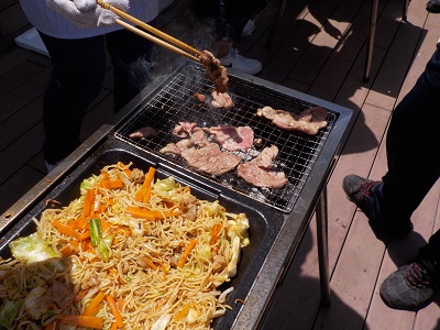 メニューは焼き肉、フランクフルトに焼きそばでした。