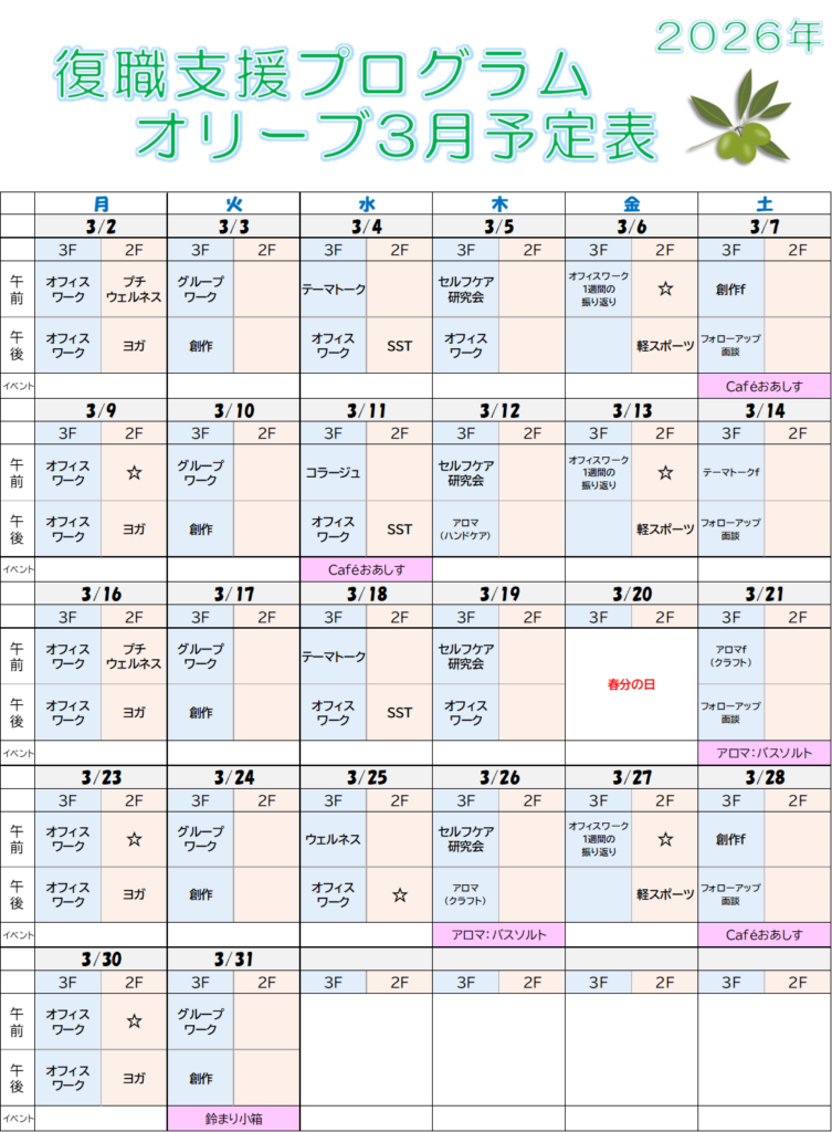 ●caféおあしす:3/7(土)・3/11(水)・3/28(土)